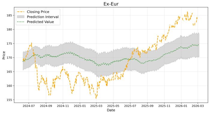 - 翌週の5日間の予測値と実際の取引値の比較をグラフに表しています。