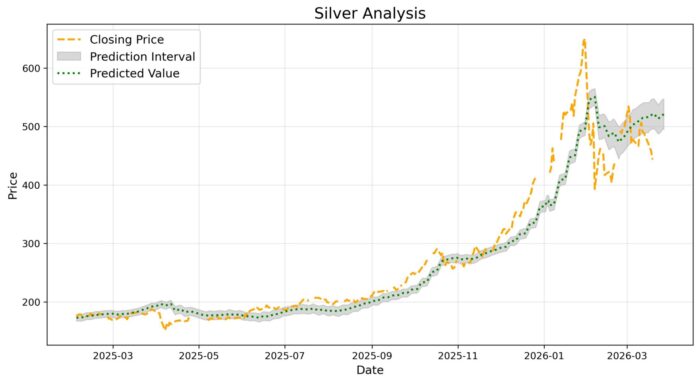 - 灰色の帯の下限が予測の下限、上限が予測の上限を表しています。