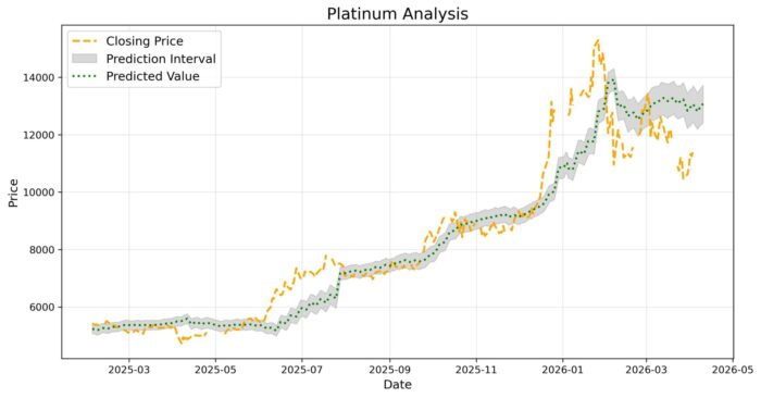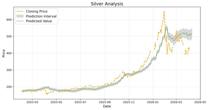 - 灰色の帯の下限が予測の下限、上限が予測の上限を表しています。